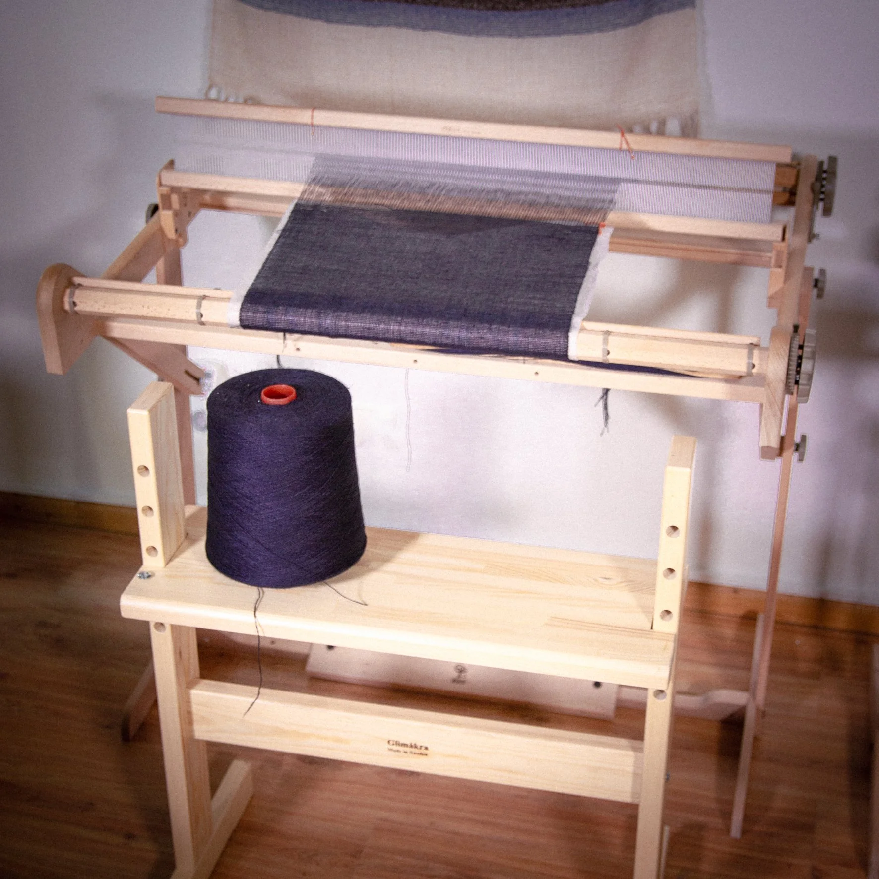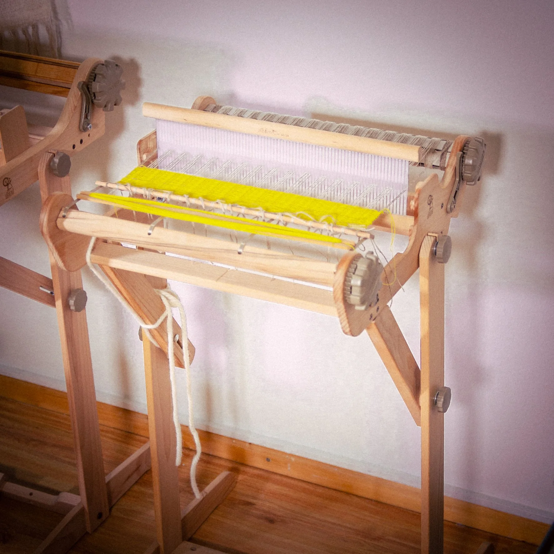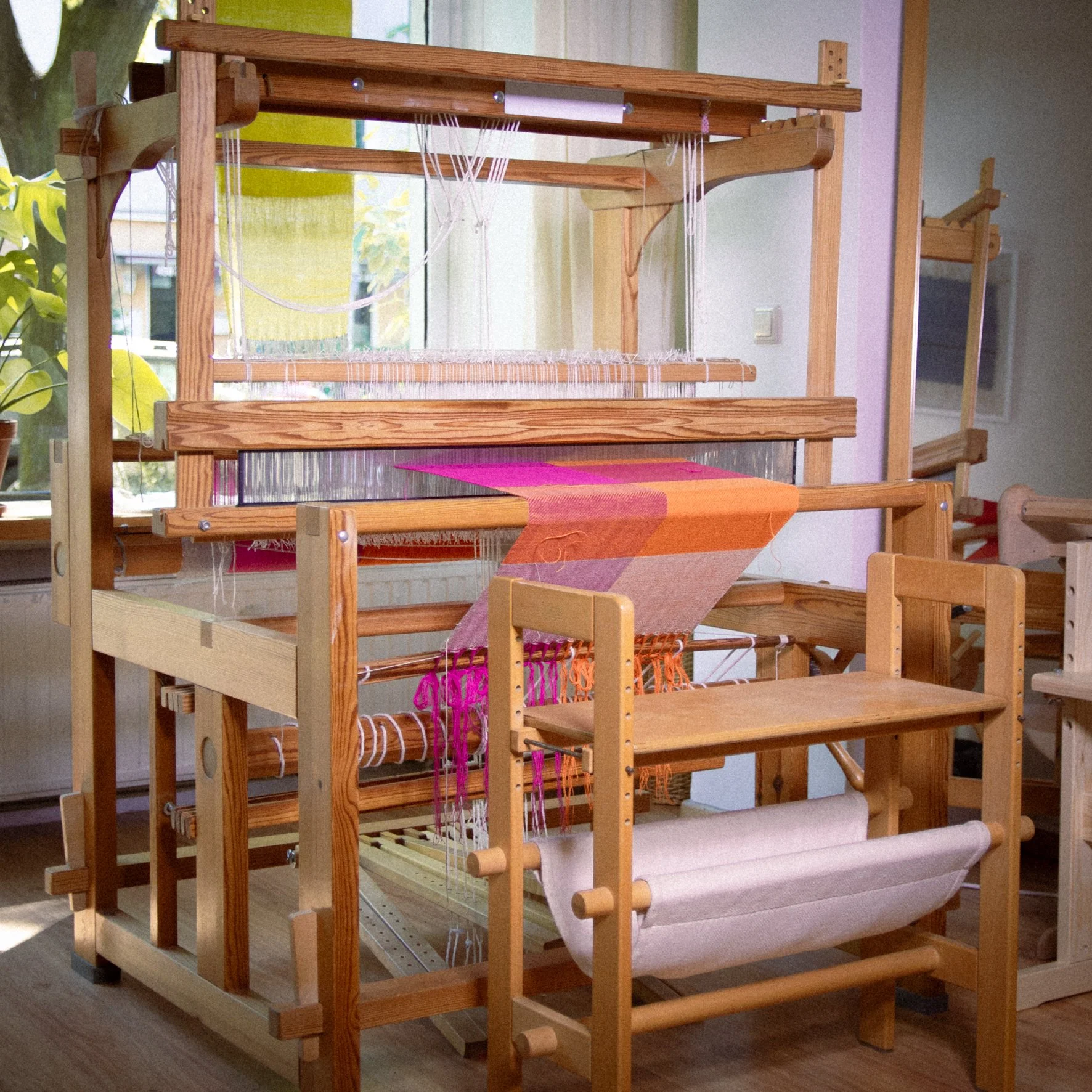Es gibt Gatterkamm-Webrahmen in drei unterschiedlichen Breiten, sowie zwei Kontermarschwebstühle mit 4-6 Schäften bis zu einer Websbreite von 80 cm.